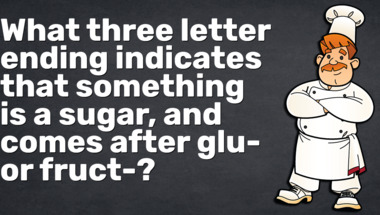 In this fun trivia quiz we're going to ask questions like "What is used to make the jelly surrounding the veal in the dish of kalvsylta?" and "What three letter ending indicates that something is a sugar, and comes after glu- or..".